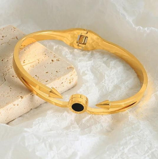 Pulseiras de aço inoxidável para mulheres, pulseira banhada a ouro, jóias elegantes, acessórios para meninas, acrílico preto, frete grátis, novo